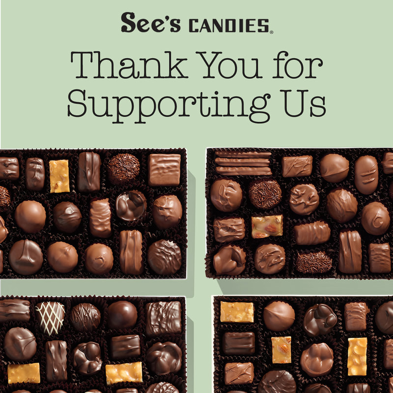 See's Candy! Our virtual candy store is now open (Click)! The store closes Dec 5. Shipping begins Nov 1. Every purchase of See’s boxed chocolates, candy bars and more contributes to SBQG. Enjoy sweet treats while supporting our winter drive!