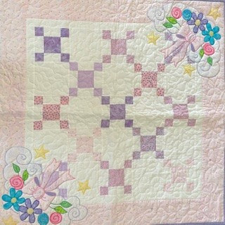 Photo 2 (ID51): Posies Baby Quilt, 41” x 40.5”, $45. Girlie wall hanging or baby quilt.