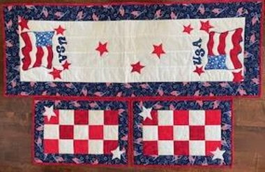 Photo 1 (ID60): Happy Birthday USA, 18” x 49”, $50. Table runner + 2 placemats.