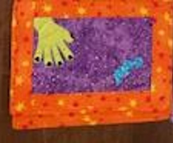 Photo 1 (ID17): Witches and Warmth, 48" x 58", $150. Wonderful witches, bats, and subtle skulls. Flannel backed. Specialized quilting.