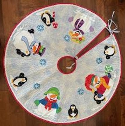 Photo 4 (ID68): Snow Folk Tree Skirt, 42.5” diameter, $30. Christmas Tree Skirt.