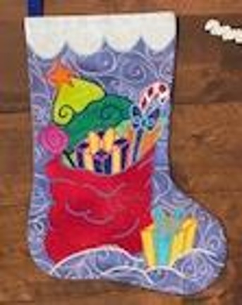 Photo 5 (ID69): Santa’s Gift Bag, 8” x 15”, $15. Holiday stocking