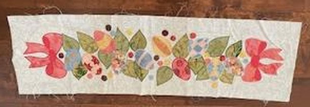 Photo 5 (ID79): Easter Garland Table Runner, 12.5” x 43.5”, $20. Top finished; needs to be quilted.