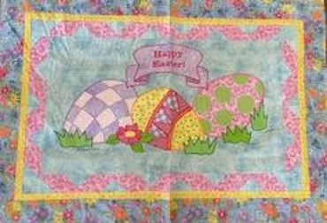 Photo 2 (ID81): Happy Easter Wall Hanging, 26.5” x 38.5”, $30. Top finished; needs to be quilted.