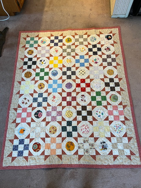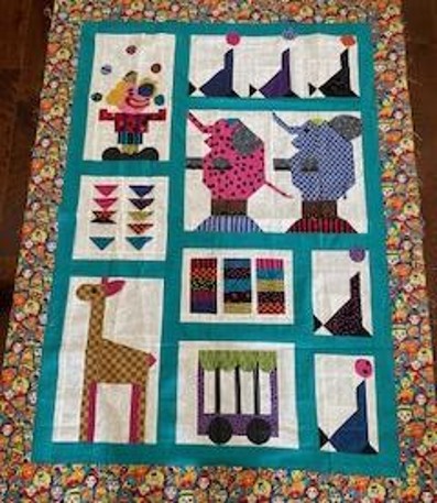 Photo 4 (ID83): Circus, 43” x 59”, $35. Finished top needs to be quilted.
