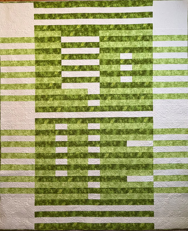 - Photo 5 (ID10): LOVE Is In the Quilt, 64" x 76", $700 This is made of pretty green fabrics that blend together well and sewn in such a way as to eventually spell LOVE.