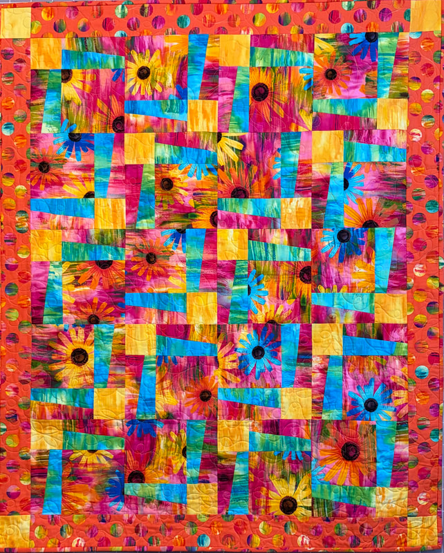 - Photo 2 (ID12): Mod Flowers, 50" x 41", $300. Bright and happy flowers cut apart and sewn together for anyone to enjoy.