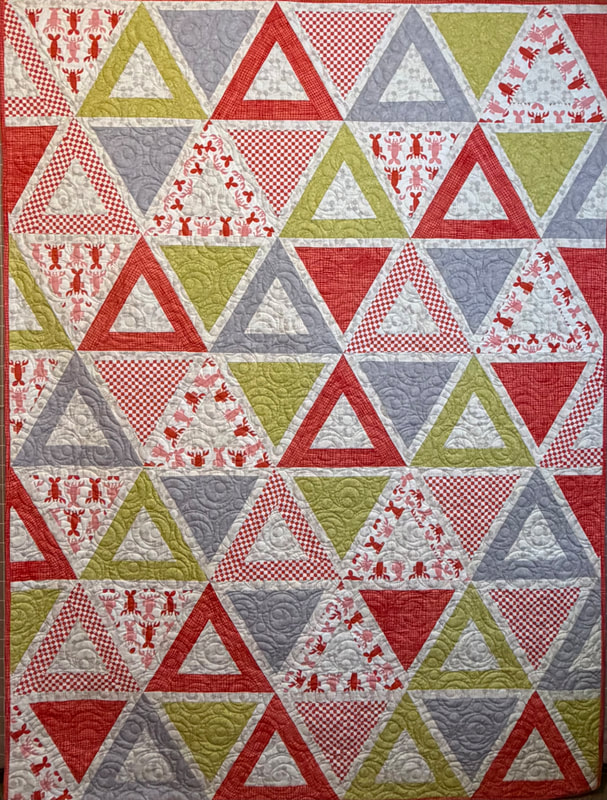 - Photo 3 (ID13): Lovin' Lobsters, 61" x 82", $600. This is a great quilt for a twin bed and a conversation piece for any bedroom or boat.