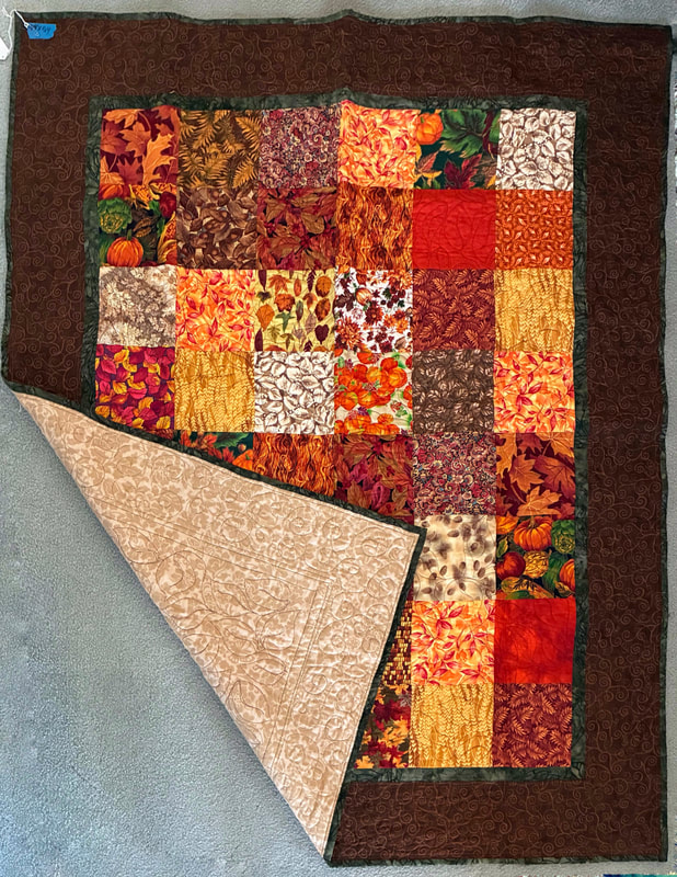 - Photo 5 (ID16): Fall Warmth, 44" x 54", $125. A medley of fall colors. Flannel backed.