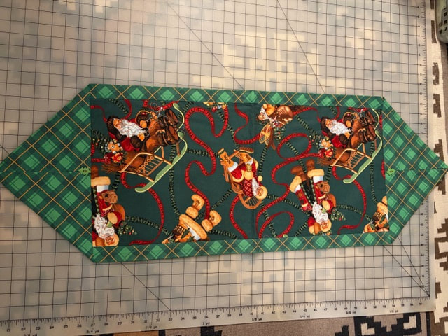 Photo 5 (ID21): Forest Santa, 14" x 41", $20. Table runner with rustic Santa fabric.