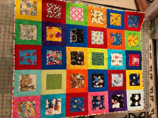 Photo 5 (ID26): I Spy, 36" x 43", $50. Youth quilt in block design with various animals and objects to identify.