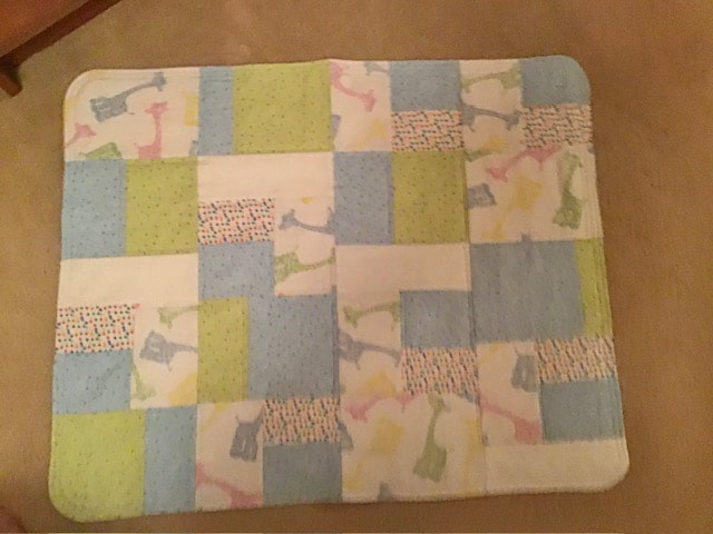 Photo 4 (ID32): Giraffes, 24" x 29", $20. Baby blanket/pad with pastel colors and giraffe print. Made with three layers of flannel.