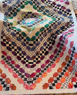 Photo 3 (ID30): Circles & Hexies, 50" x 60", $50. This quilt's intended as a comfy throw-size. Circles depict life's encounters.