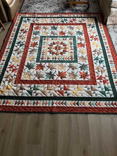 Photo 2 (ID42): Harvest Star, Images of Fall, 82" x 94", $90. Quilt made by former SBQG member.