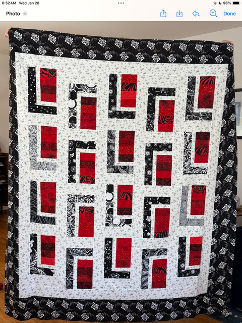 Photo 3 (ID47): Black Urban Cabin, 66" x 75", $550. Quilt designed by Terry Atkinson of Atkinson Designs.