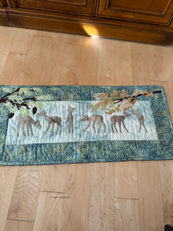 - Photo 1 (ID06): Beneath the Boughs, 28.5" x 12.5", $35 This is a Hoffman pattern for a wall hanging of calmness and past camping trips.