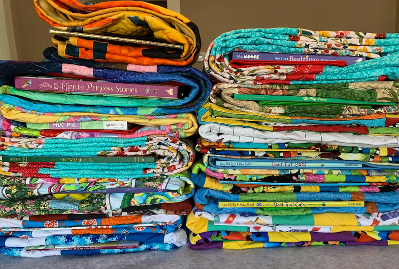 The size of your quilt can be from 40"-ish x 60"-ish (large enough for children to wrap around themselves), to lap/twin size for those who are older and getting ready to live on their own. Coordinating pillowcases are welcome, and so are baby quilts. Click here for methods to make pillowcases.