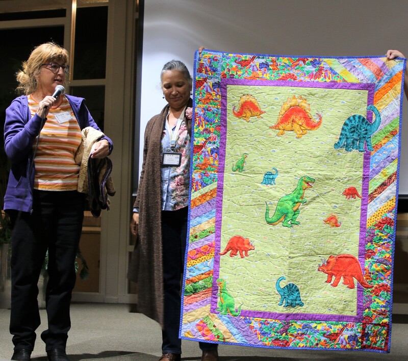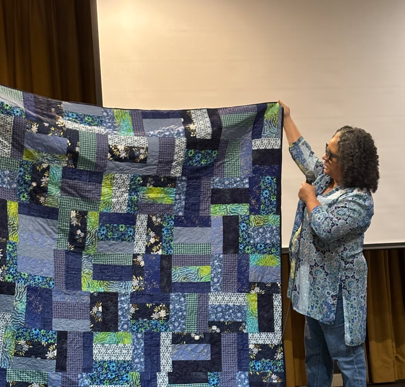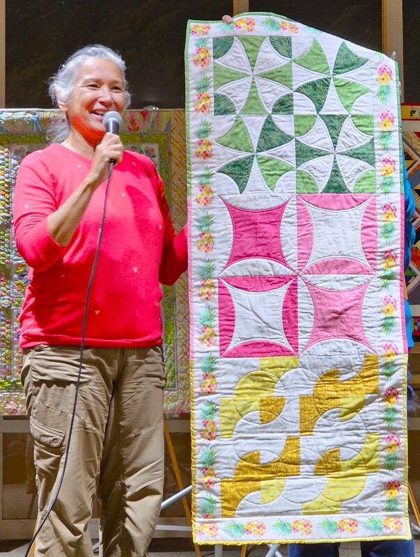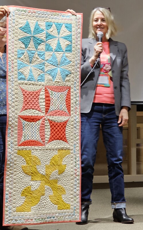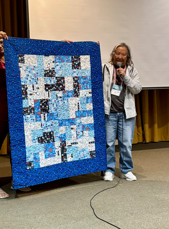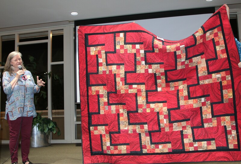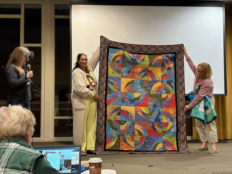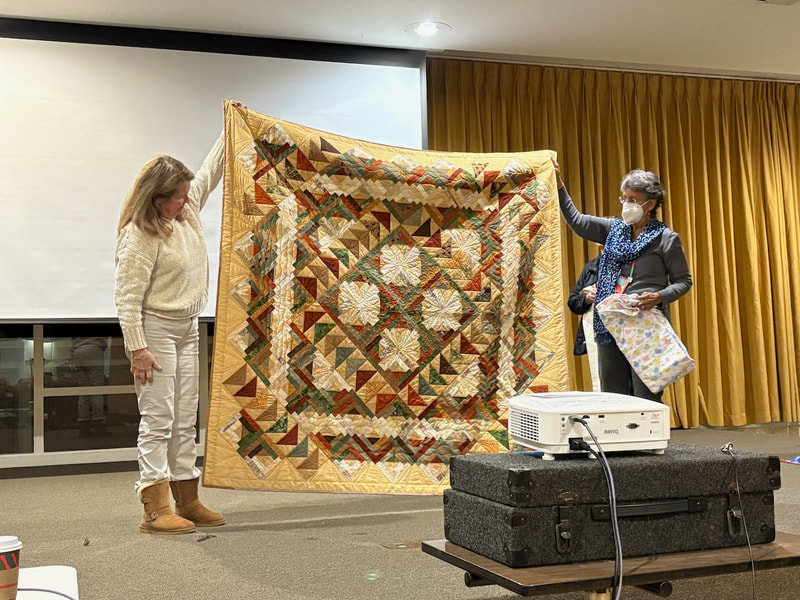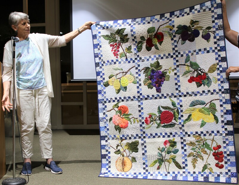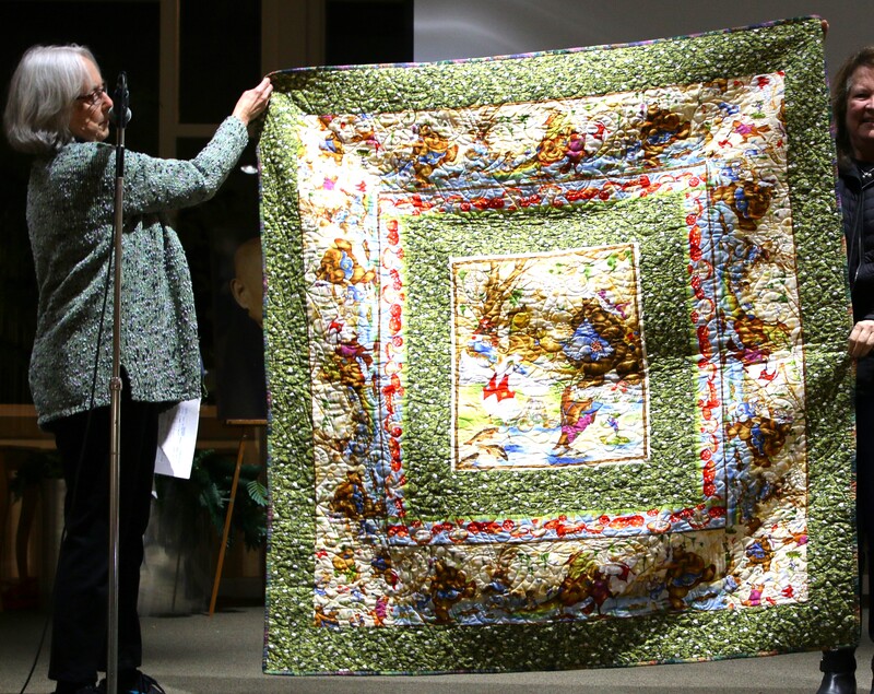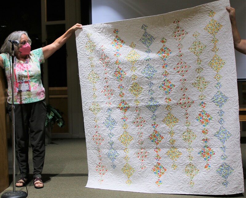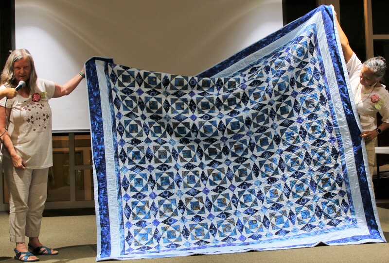 The design and assembly team led by Melanie Dreike included Nadine Kirk, Marie Cortez, Sue Glass, and Julie Limbach Jones. Blocks were made by members of South Bay Quilters Guild and Matt Randall of Randall Quilting & Design quilted it.