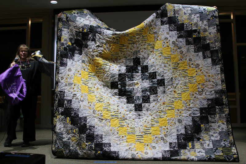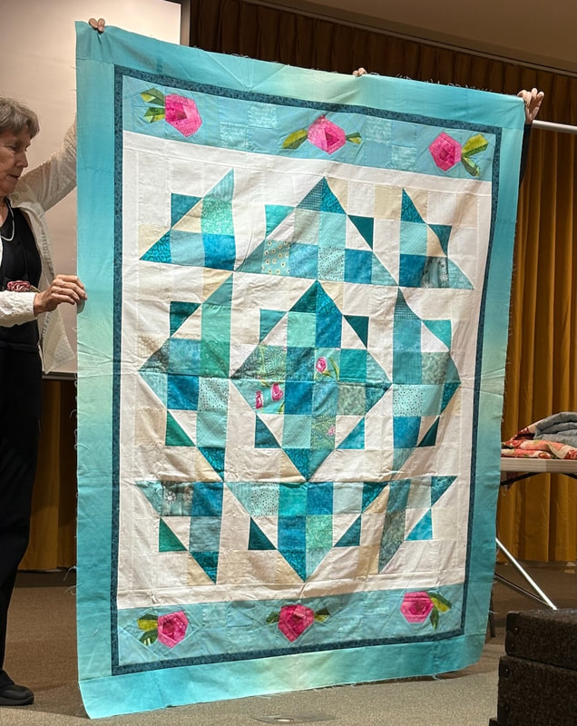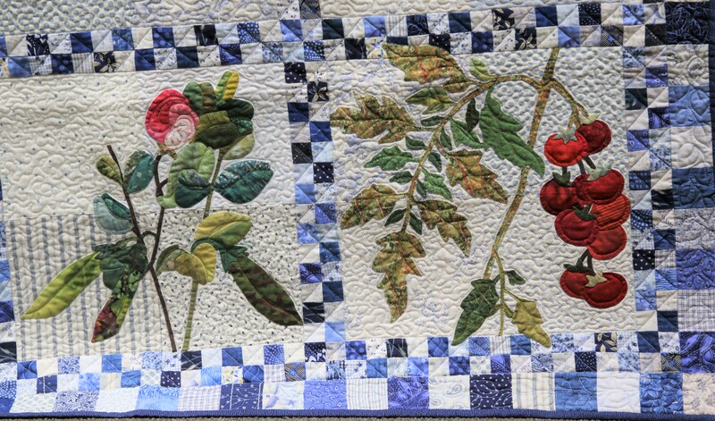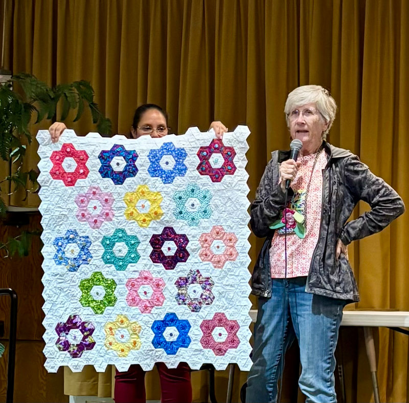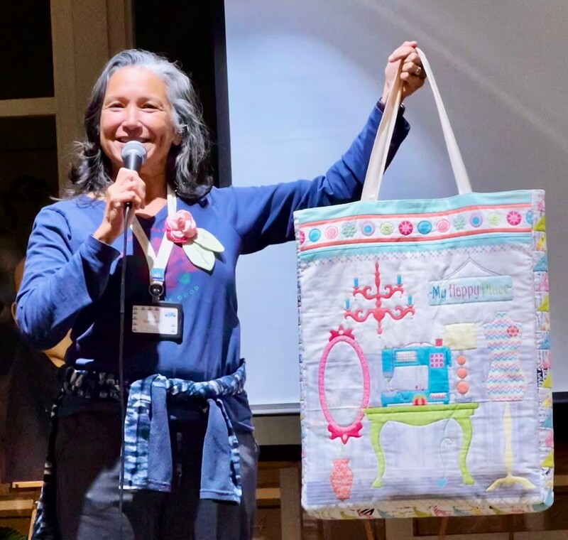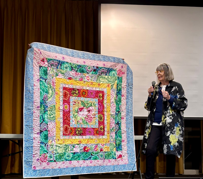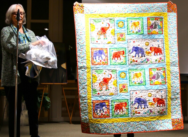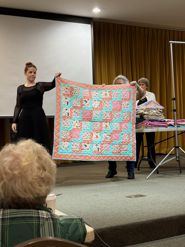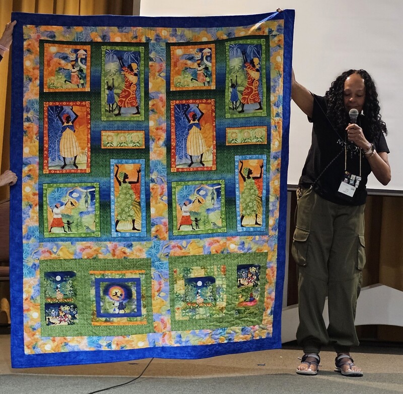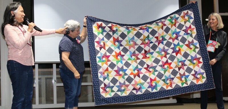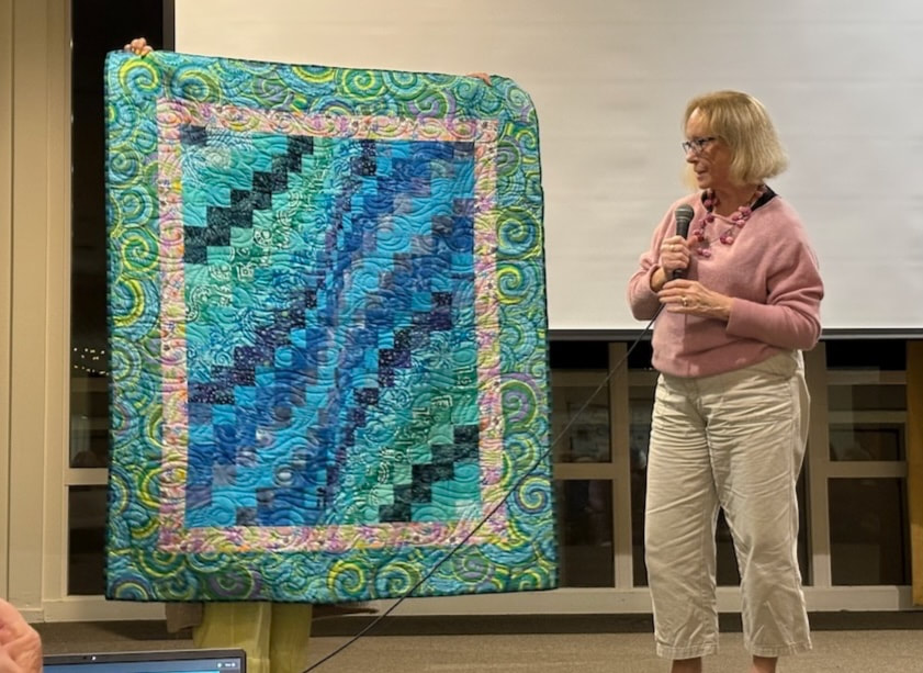 The design and assembly team led by Melanie Dreike included Nadine Kirk, Marie Cortez, Sue Glass, and Julie Limbach Jones. Blocks were made by members of South Bay Quilters Guild and Matt Randall of Randall Quilting & Design quilted it.