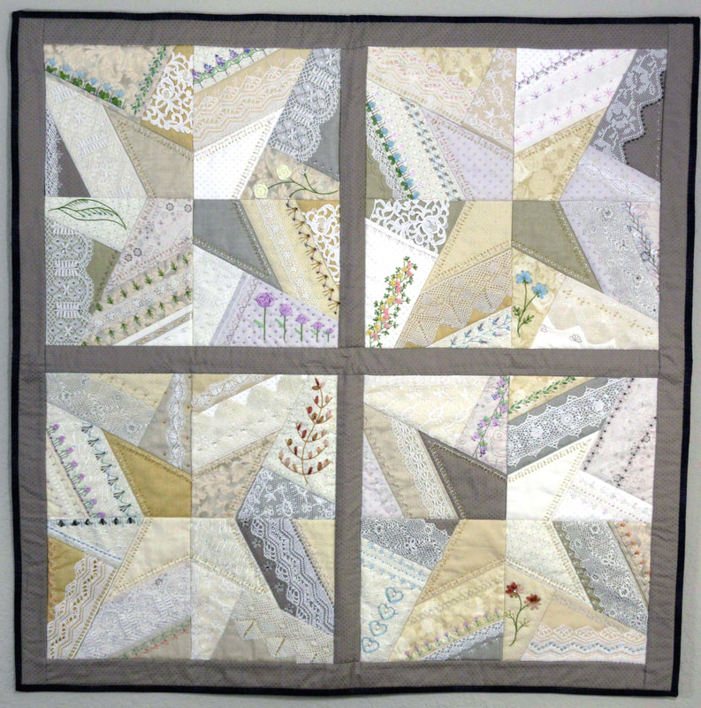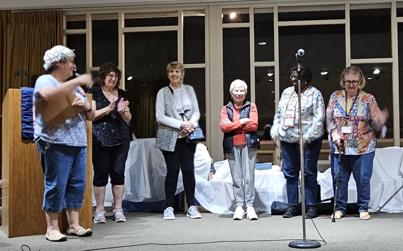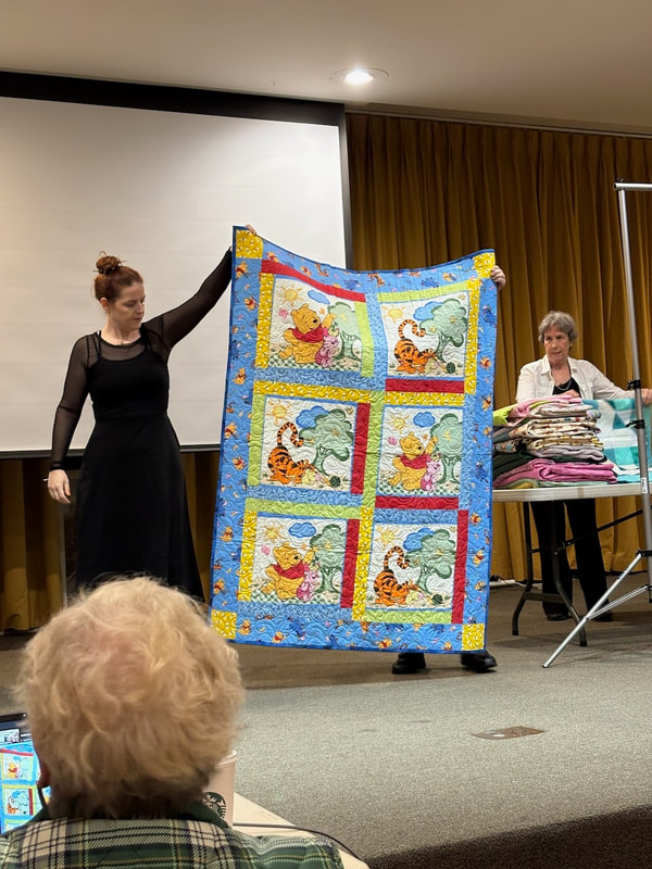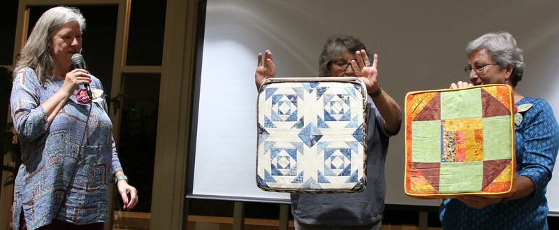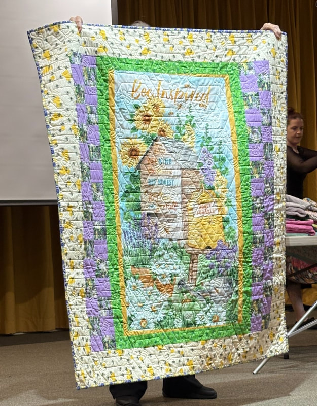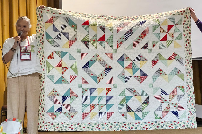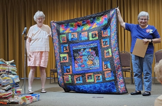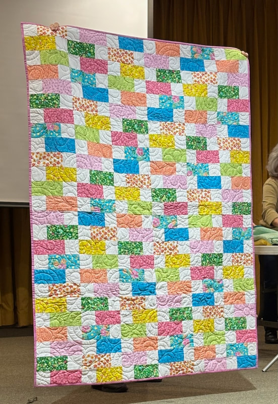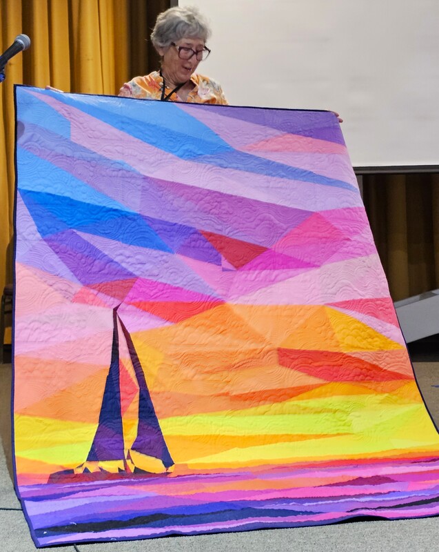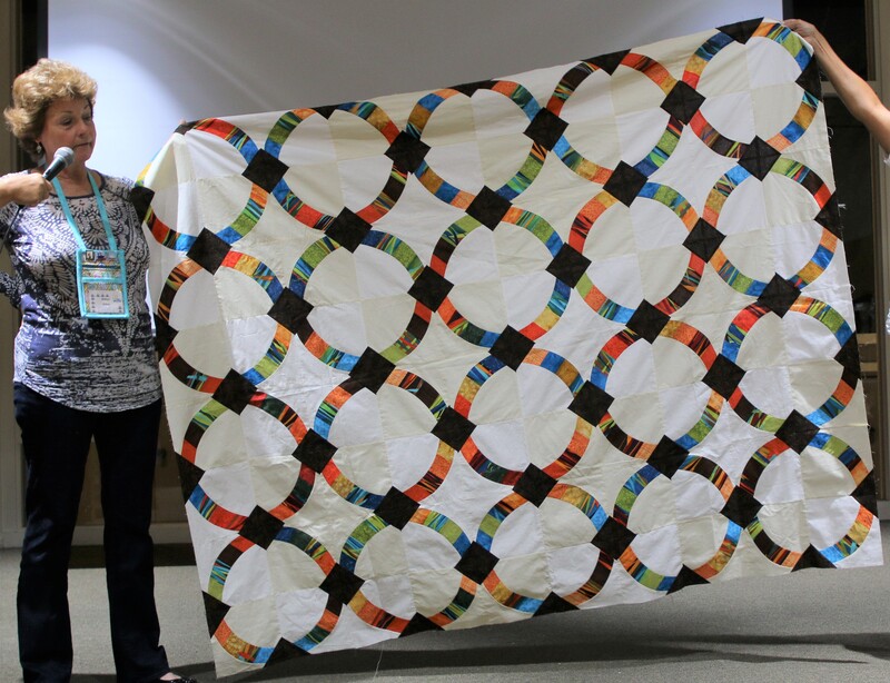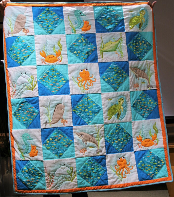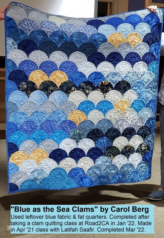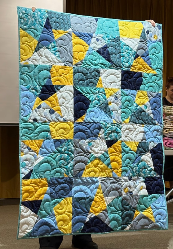 The design and assembly team led by Melanie Dreike included Nadine Kirk, Marie Cortez, Sue Glass, and Julie Limbach Jones. Blocks were made by members of South Bay Quilters Guild and Matt Randall of Randall Quilting & Design quilted it.