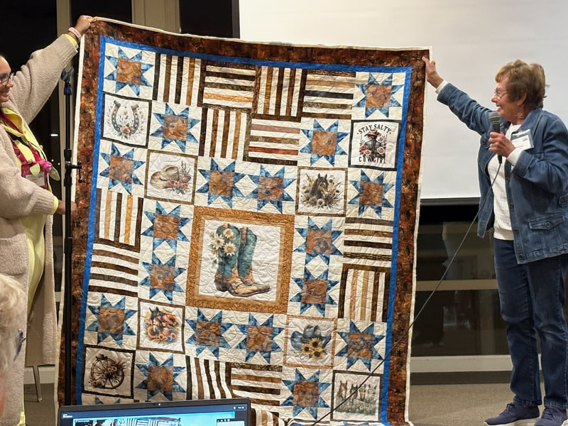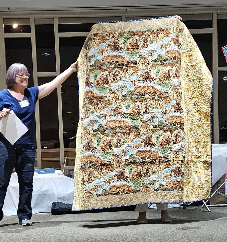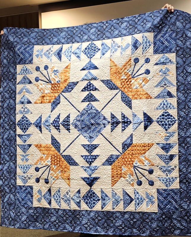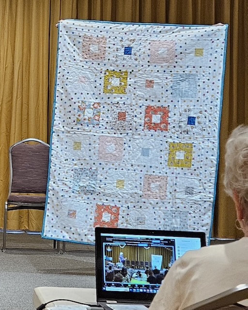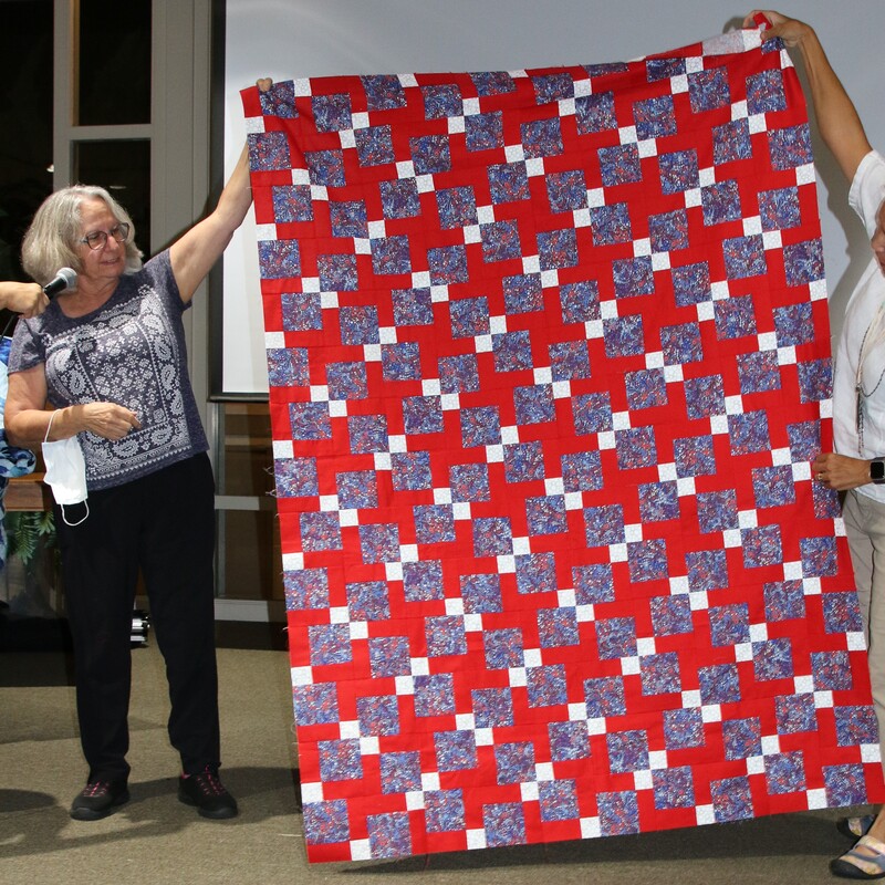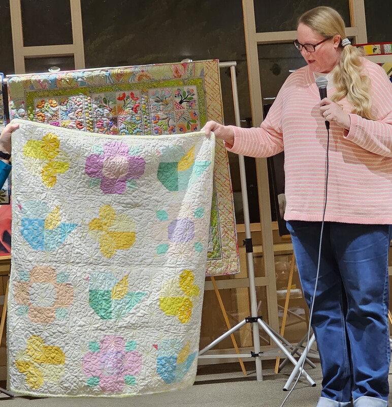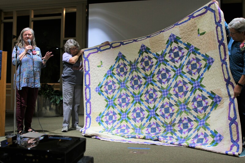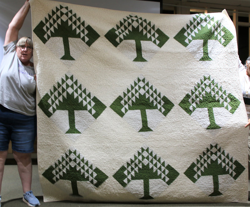 There was a lot of interest on social media about the quilt with requests for the pattern. Because the quilt is made using a mix of commercial patterns and applique designs created by a member of SBQG, we created a “design packet” that describes the process used in making the quilt and its story. The PDF design packet is available for purchase on etsy.com at Twisted Threads (https://www.etsy.com/TwistedThreadsFabric/listing/972991579) and all proceeds benefit SBQG.