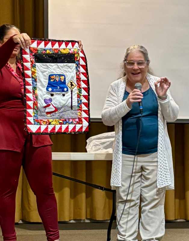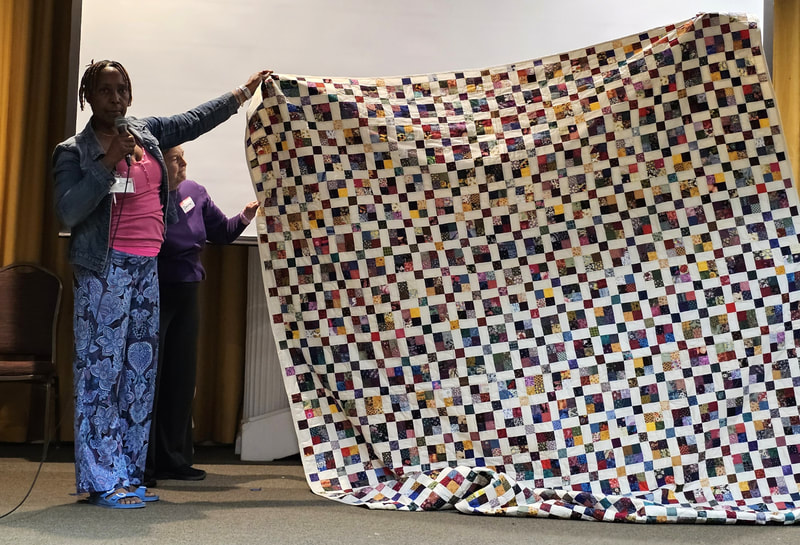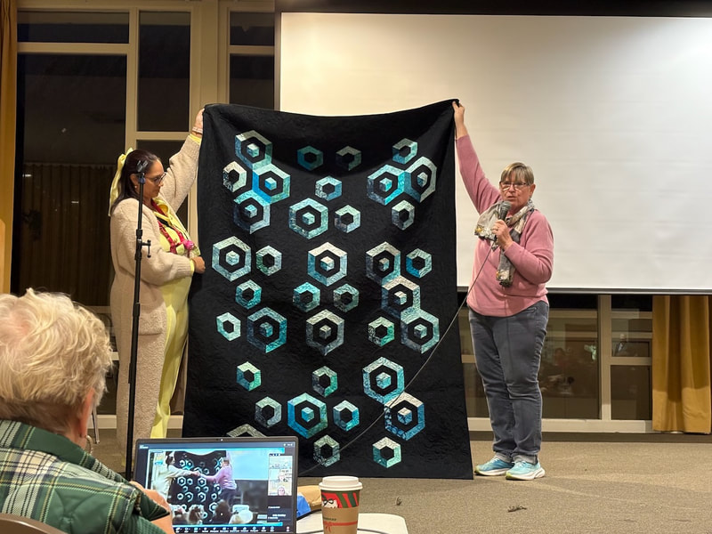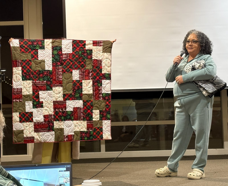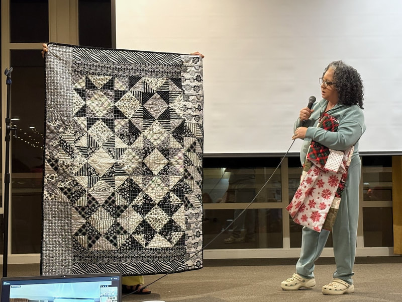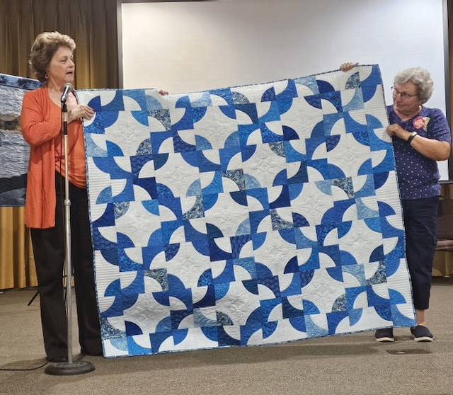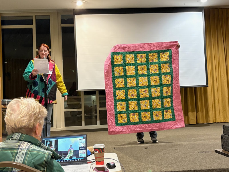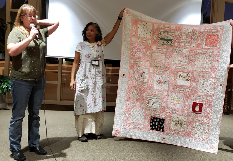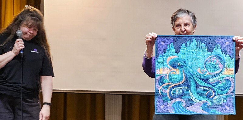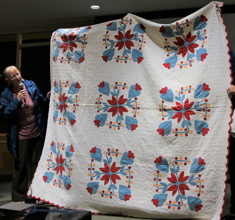 There was a lot of interest on social media about the quilt with requests for the pattern. Because the quilt is made using a mix of commercial patterns and applique designs created by a member of SBQG, we created a “design packet” that describes the process used in making the quilt and its story. The PDF design packet is available for purchase on etsy.com at Twisted Threads (https://www.etsy.com/TwistedThreadsFabric/listing/972991579) and all proceeds benefit SBQG.