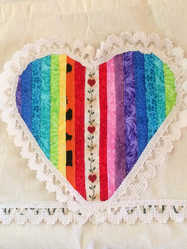 Made by members of the South Bay Quilters Guild and submitted to the Modern Quilt Guild for QuiltCon Together 2021, a virtual show. We were excited to learn that it won the People’s Choice Award. Comments from two MQG board members during the announcement of the award: Heather: “I feel that it is super fitting that a quilt about houses, when we’re all attending QuiltCon from our houses gets the People’s Choice Award this year.” Karen: “I agree. I think maybe the message of this quilt just spoke to all of us this year.”