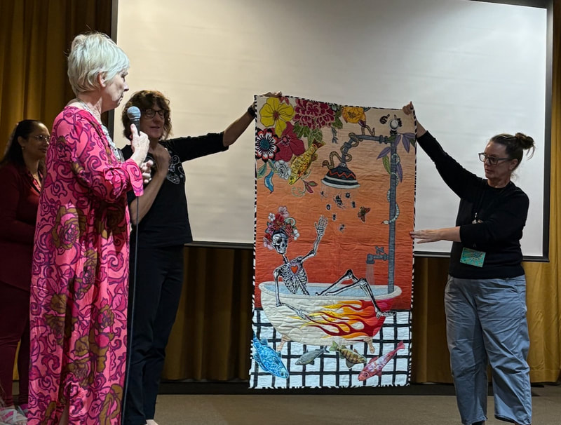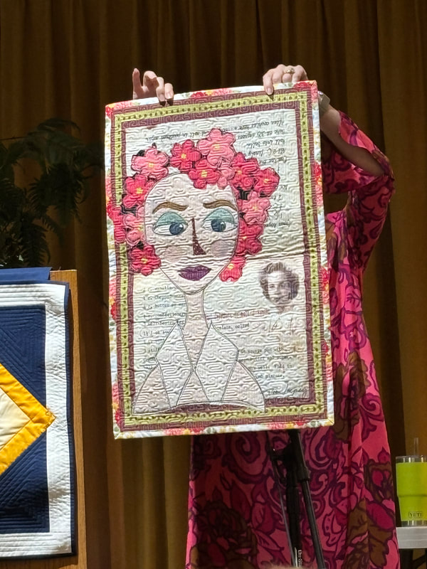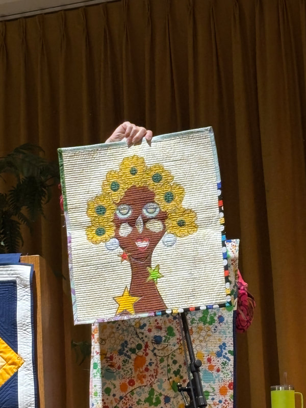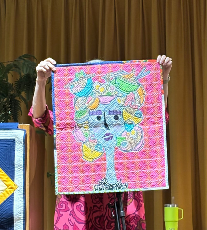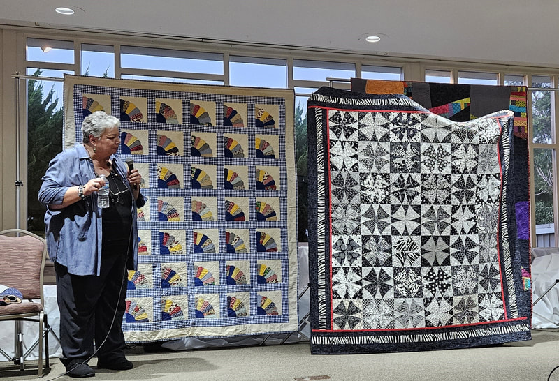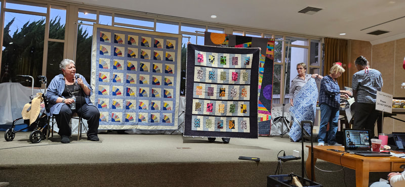 The September speakers was Frances Moore, speaking on "Never Say Never...Life Lessons from Quilting." Frances was at the meeting and had some of her friends in the audience. She shared a wonderful trunk show that demonstrated her love of quilting, her easygoing style and her love of color. Website: https://frantastic-stitch witchery |