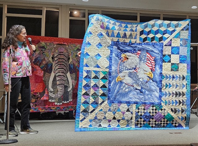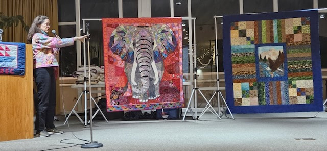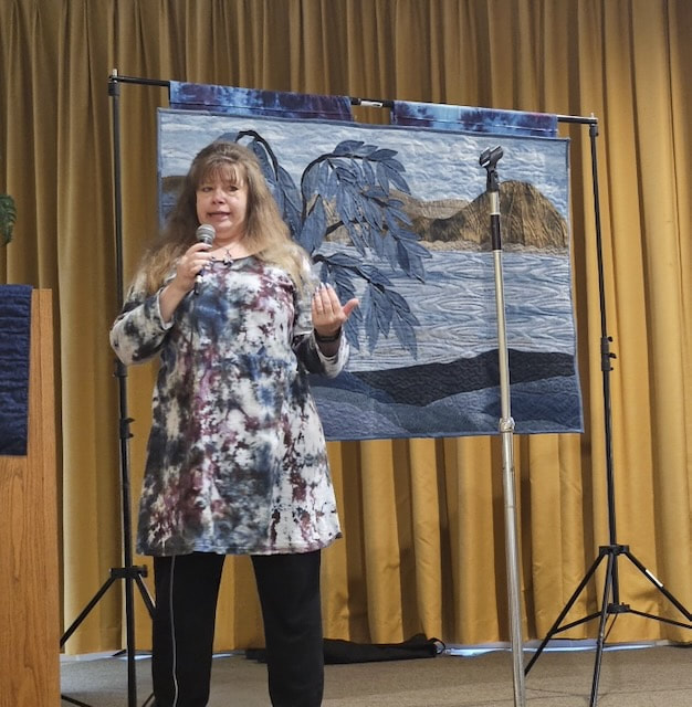 The May meeting featured Alex Tsubota, speaking on “Landscapes - From Here to There.” Alex shared her stunning quilts and her journey into landscape quilting and what inspires her