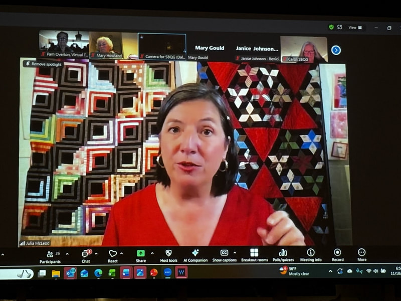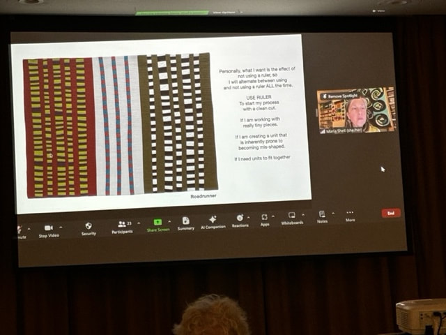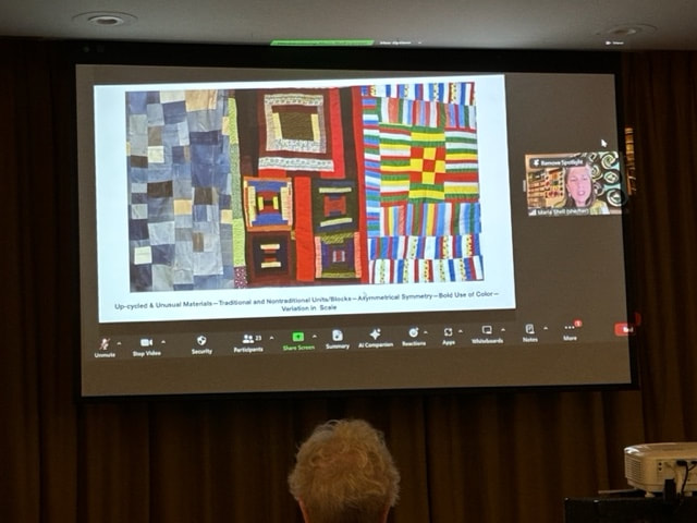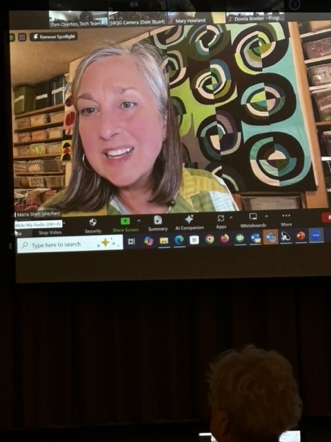Our September speaker was Maria Shell, presenting “Improv Curious – A History, A Story, A Lesson” via Zoom. Maria’s presentation incorporated the beginnings of Improv quilting with the Gees Bend quilters and brought us up to date with those who have advanced the craft through the years, including her own journey.