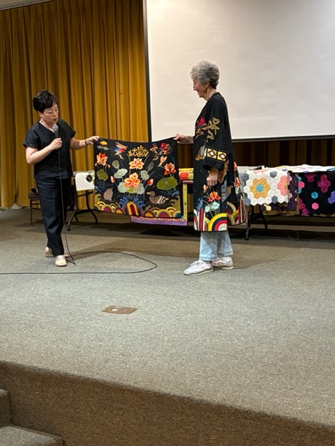 The August speaker was Carol Ziogas, whose lecture, “Stitching the Sky - 19th Century Japanese Indigo, Sashiko and Boro Textiles,” included examples of textiles from Japan. Carol has been researching Japanese culture as it relates to textiles for many years and shared her findings with us. Her blog is the Ardent Thread –
