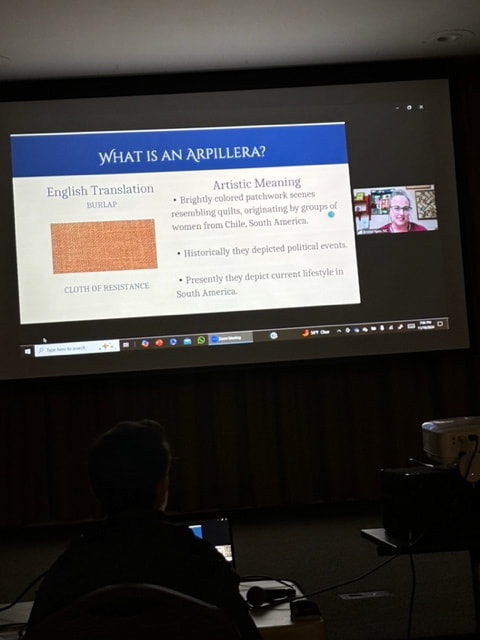 "Arpilleras: Women's Resistance through Textile Art." Emma shared examples of arpilleras from Chile and Peru, and we learned about the history and significance of this textile art form started in Chile in the 1970s.