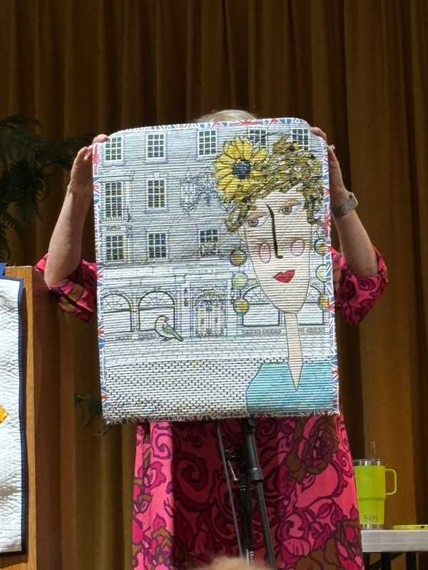 The October speaker was Diane Harris, speaking on "Taste Test Trunk Show: Unexpected Sampler Quilts." Diane Harris treated us to an interesting trunk show, showing quilts that represented her quilt journey across the years. Website: Stash Bandit - Quilting Shenanigans Instagram: @stashbanditquilts. (No Photos available) September 2023 (Frances Moore)