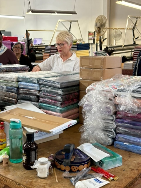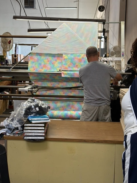 Picture #7 & #8: Watching fabric being loading onto cardboard bolts